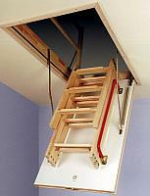 pushed back up when not in use. Available in different materials and styles, pull-down loft ladders are practical and space-saving for any home.